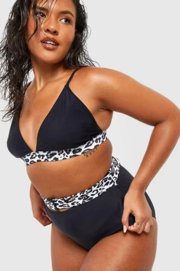BOOHOO Plus Leopard Contrast Trim Bikini