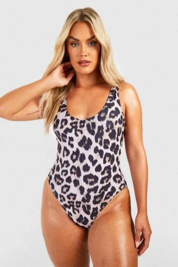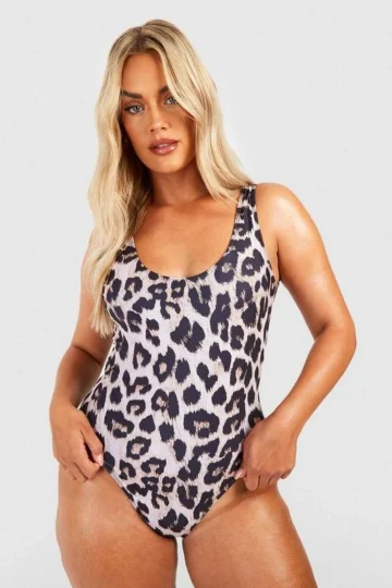 BOOHOO Plus Leopard Print Scoop Neck Swimsuit