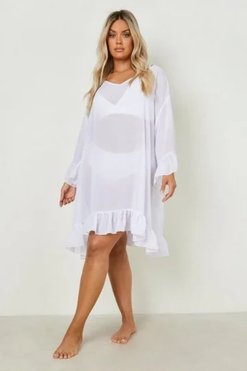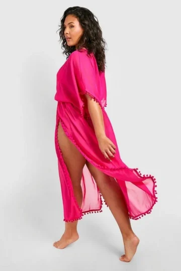 BOOHOO Plus Pom Pom Split Leg Kaftan