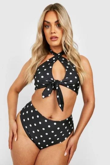 BOOHOO Plus Polka Reversible Tie Front Bikini Top
