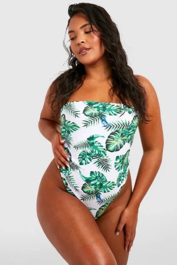 BOOHOO Plus Printed Reversible Bandeau Swimsuit