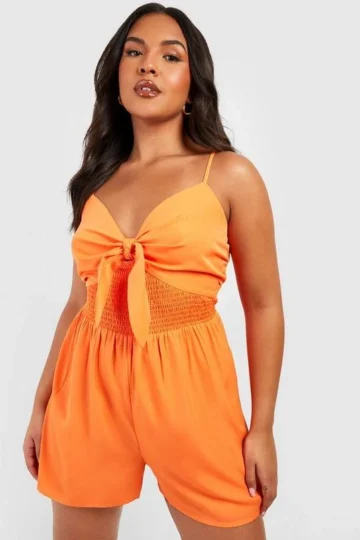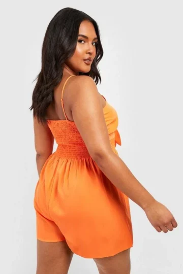 BOOHOO Plus Strappy Beach Tie Front Romper
