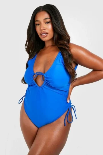 BOOHOO Plus Ruched Cut Out Tie Plunge Swimsuit