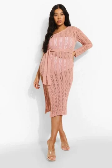 BOOHOO Plus Shimmer Knitted Beach Shoulder Dress