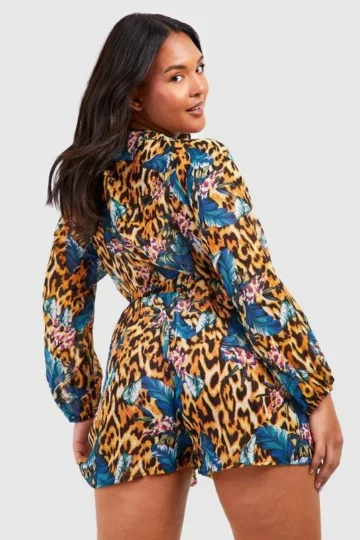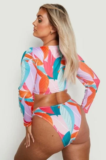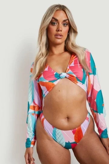 BOOHOO Plus Tropical Knot Long Sleeve Bikini Set