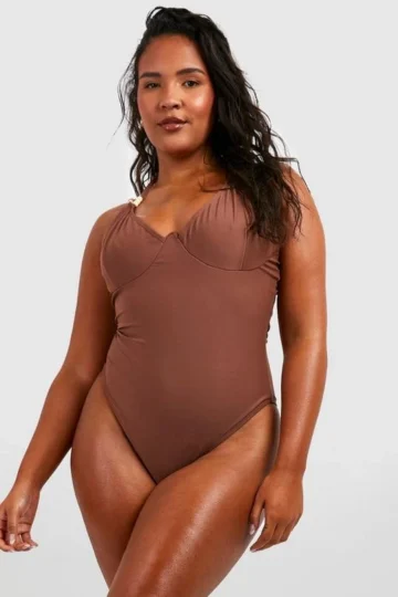 BOOHOO Plus Wooden Bead Strap Detail Underwired Swimsuit