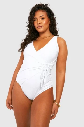 BOOHOO Plus Tummy Control Wrap Belted Swimsuit