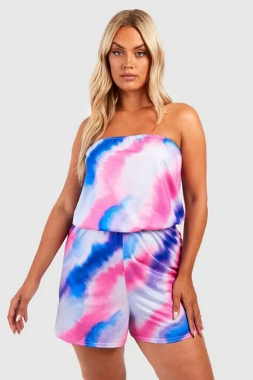 BOOHOO Plus Tie Dye Printed Jersey Knit Bandeau Beach Romper