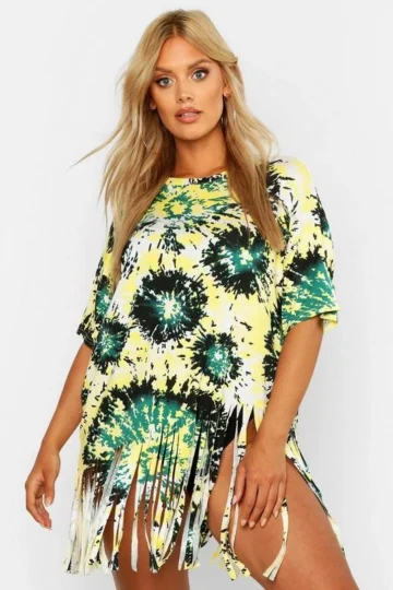 BOOHOO Plus Tie Dye Tassel Beach Dress
