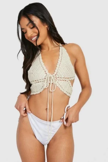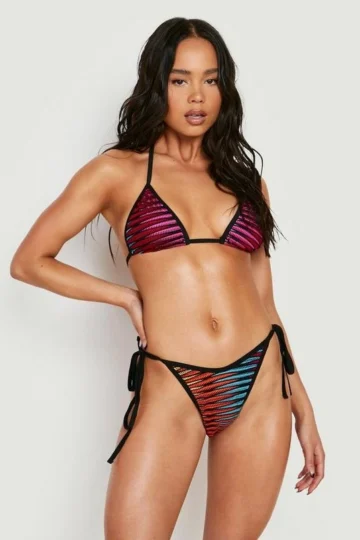 BOOHOO Petite Laser Knit Triangle Bikini Set