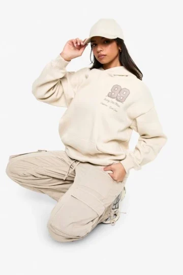 BOOHOO 99 Chest Slogan Oversized Hoodie