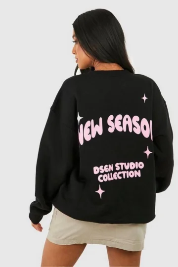 BOOHOO Black Petite New Season Bubble Slogan Sweatshirt