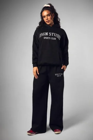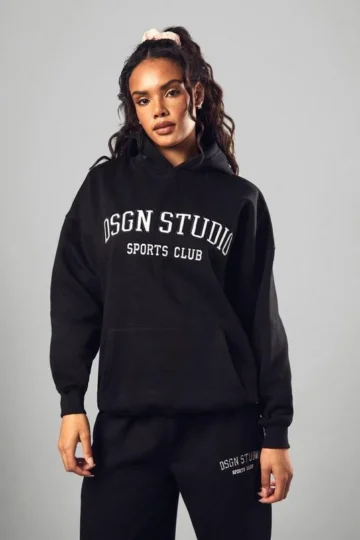 BOOHOO Black Dsgn Studio Applique Oversized Hoodie