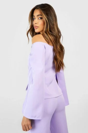 BOOHOO Button Front Split Sleeve Tailored Off The Shoulder