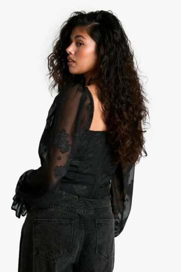 BOOHOO Burnout Puff Sleeve Milkmaid Top