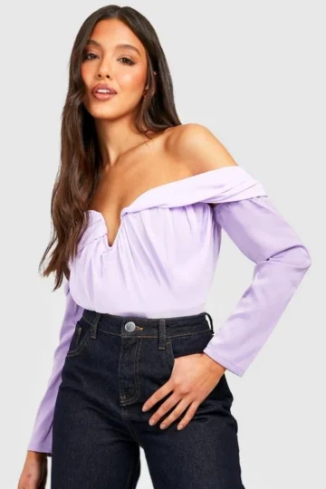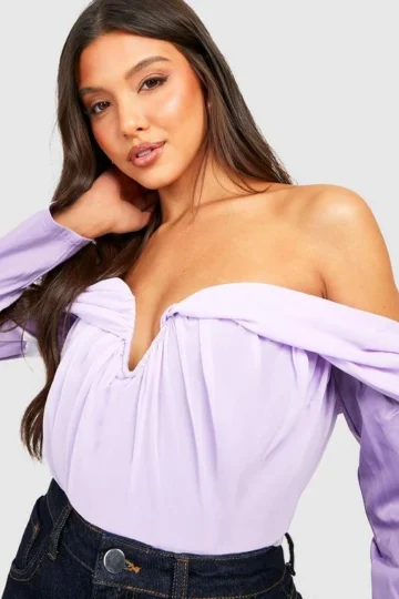 BOOHOO Chiffon Off The Shoulder Bodysuit