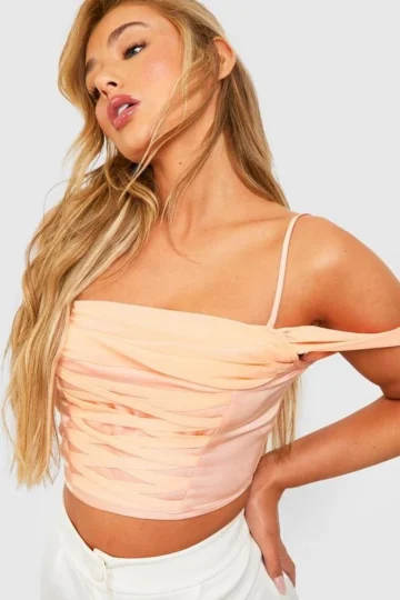 BOOHOO Chiffon Cowl Lace Up Corset Top