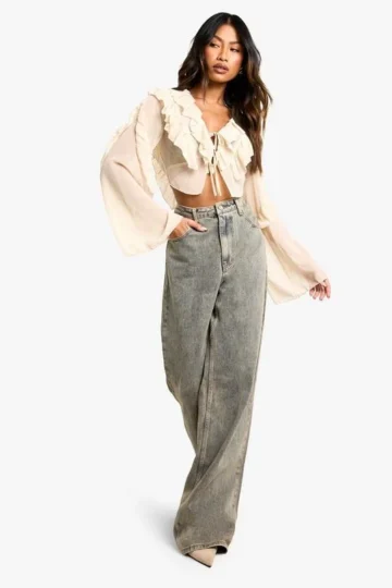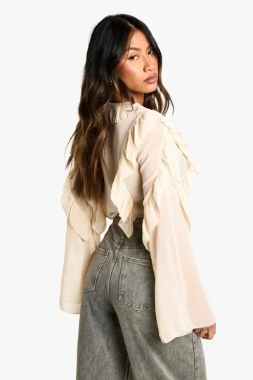 BOOHOO Chiffon Ruffle Tie Crop Blouse