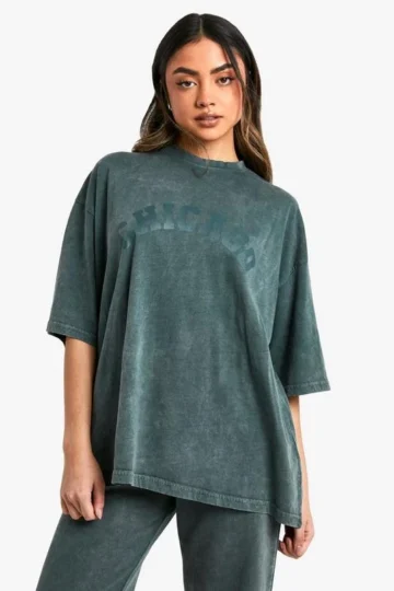 BOOHOO Chicago Slogan Oversized Washed T-Shirt