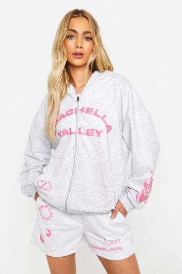 BOOHOO Coachella Valley Multi Print Zip Through Hooded Tracksuit