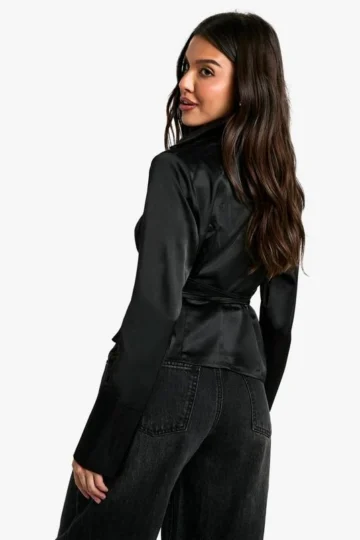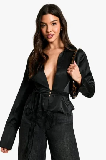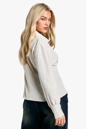 BOOHOO Cinched Waist Hammered Blouse