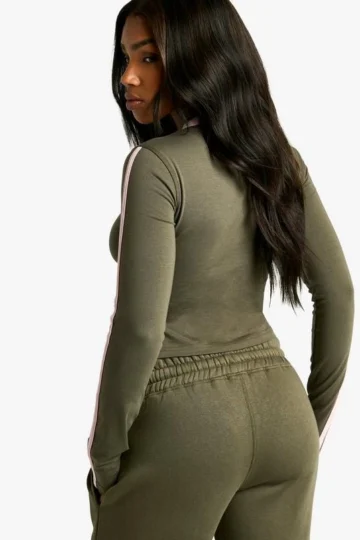 BOOHOO CONTRAST BINDING LONG SLEEVE TOP