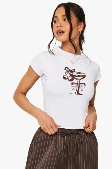 BOOHOO Cocktail Bow Fitted T-Shirt