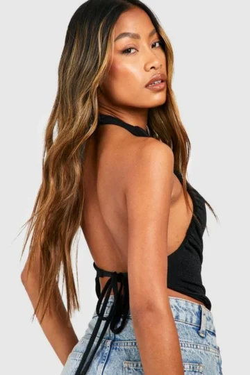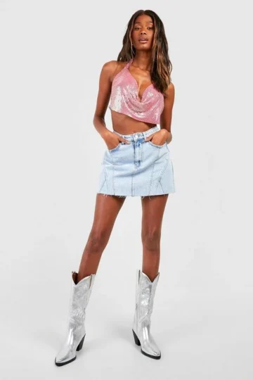 BOOHOO Cowl Neck Chainmail Crop Top