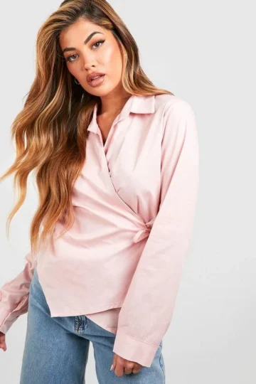 BOOHOO Cotton Wrap Around Shirt