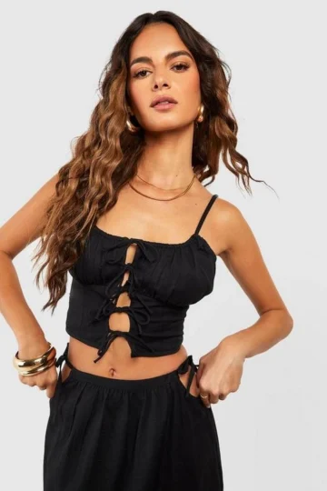 BOOHOO Cotton Tie Front Corset