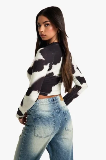 BOOHOO COW PRINT LONG SLEEVE TOP
