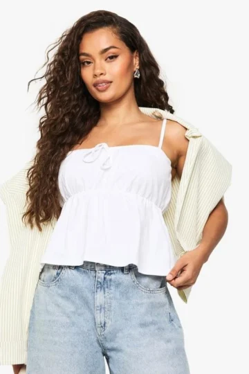 BOOHOO COTTON STRAPPY MILKMAID PEPLUM TOP