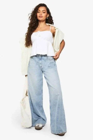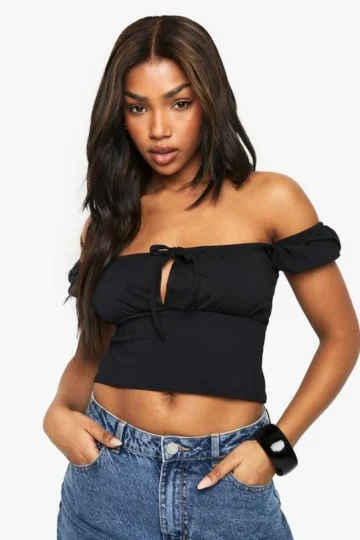 BOOHOO Cotton Tie Front Milkamid Top