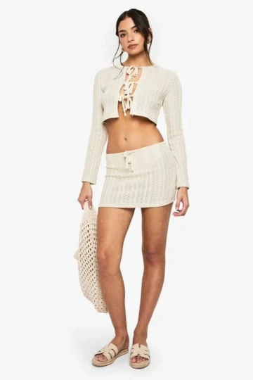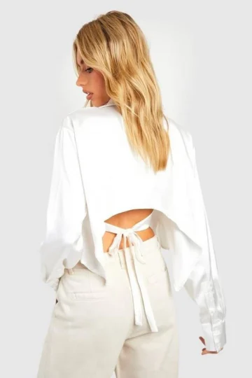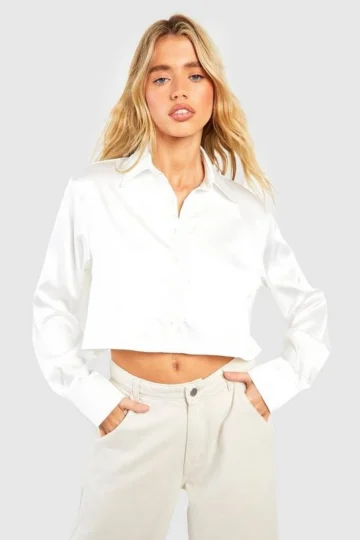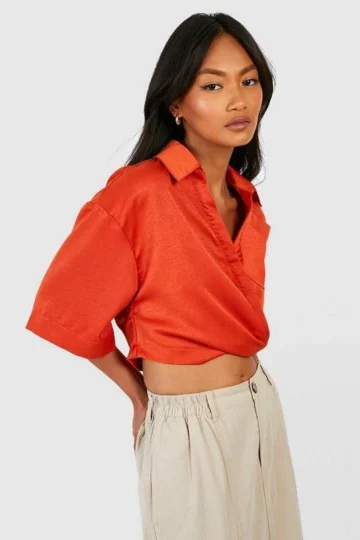 BOOHOO Crop Drawstring Ruched Hem Shirt