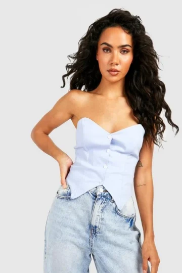 BOOHOO Bandeau Split Hem Bengaline Corset Top
