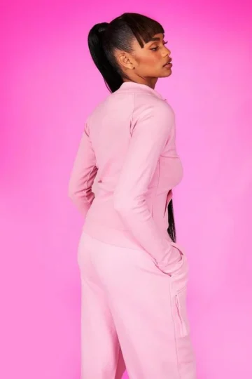 BOOHOO Barbie Embroidered Rib Zip Through Track Top