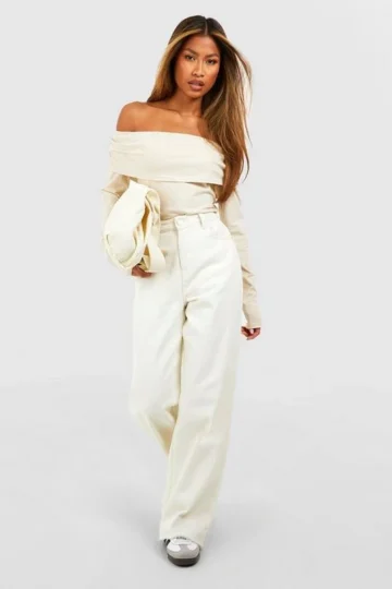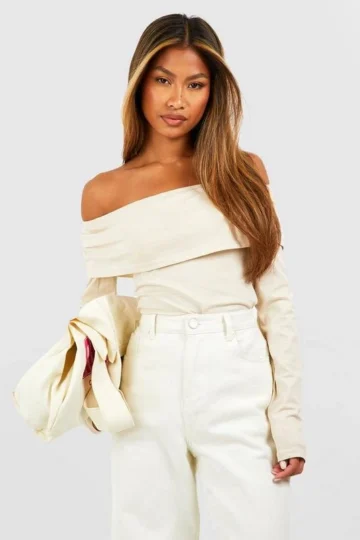 BOOHOO Basic Cotton Off The Shoulder Bodysuit