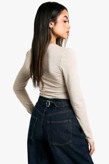 BOOHOO Basic Marl V Neck Long Sleeve Bodysuit