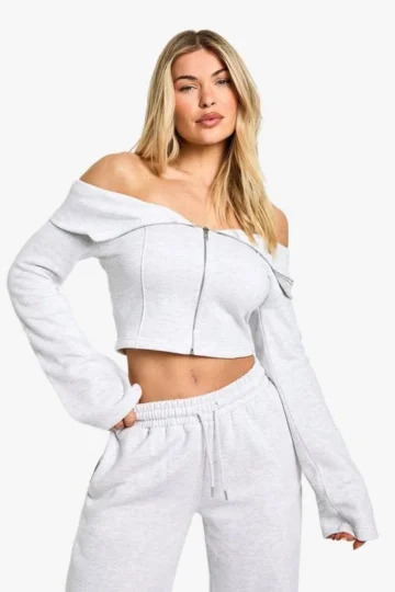 BOOHOO Bardot Long Sleeve Zip Through Sweatshirt