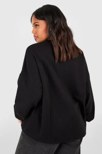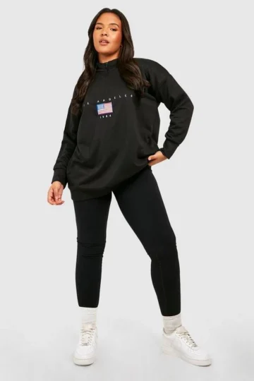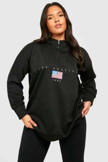 BOOHOO Plus Los Angeles Slogan Embroidered Zip Neck Oversized Sweatshirt
