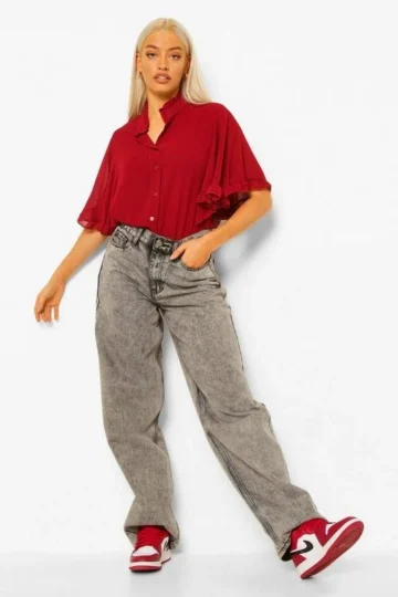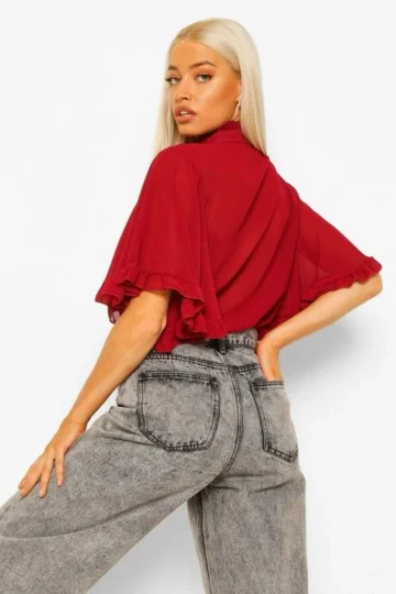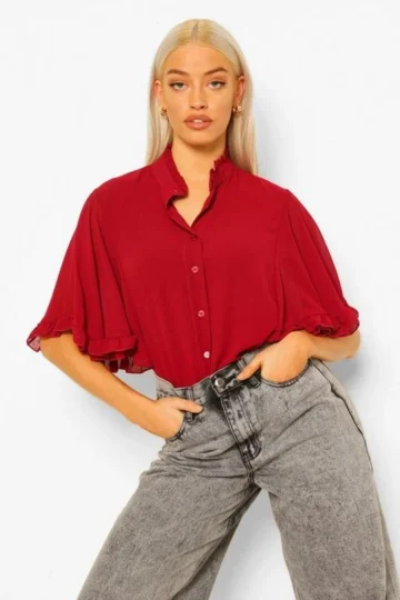 BOOHOO Woven Ruffle Angel Sleeve Blouse