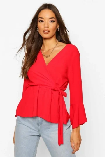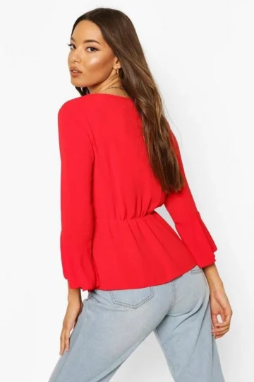 BOOHOO Wrap Front Peplum Hem Blouse