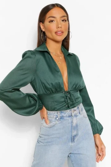 BOOHOO Woven Lace Up Corset Top