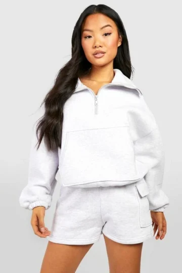 BOOHOO Petite Half Zip Sweatshirt And Short Tracksuit
