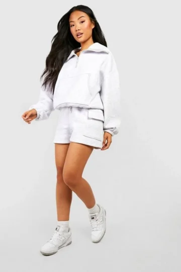 BOOHOO Petite Half Zip Sweat And Biker Short Set