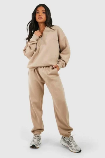 BOOHOO Pintuck Half Zip Sweater Tracksuit
