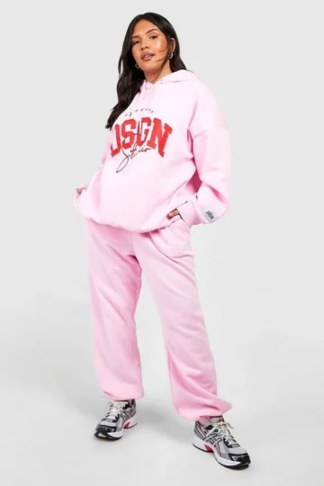 BOOHOO Plus Dsgn Studio Script Oversized Hoodie Tracksuit