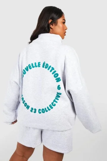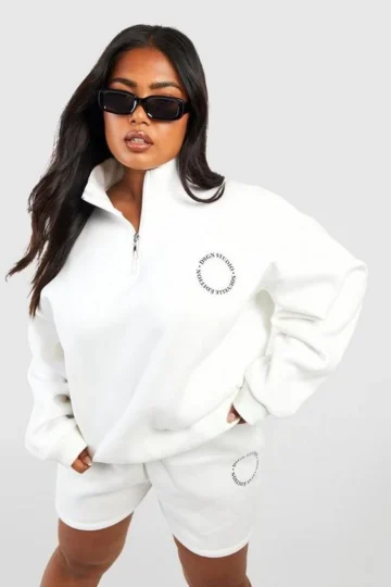 BOOHOO Plus Dsgn Studio Circle Half Zip Short Tracksuit