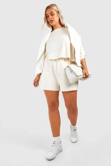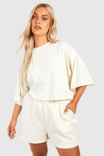 BOOHOO Plus Boxy Crop And Sweat Short Set