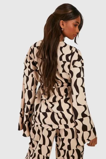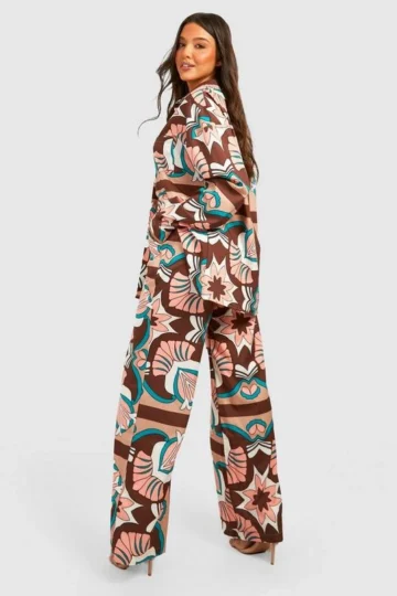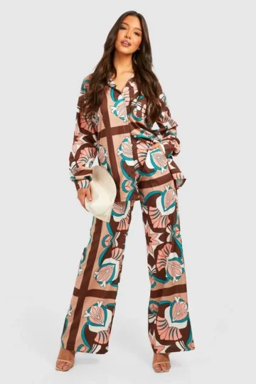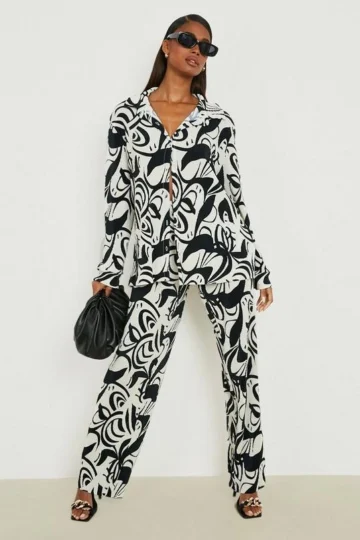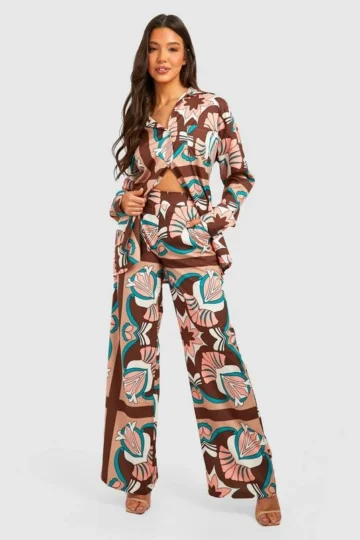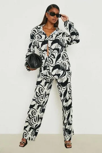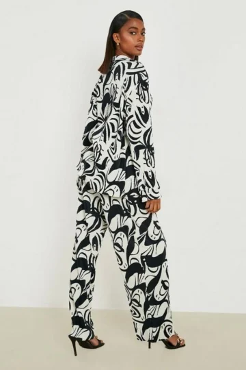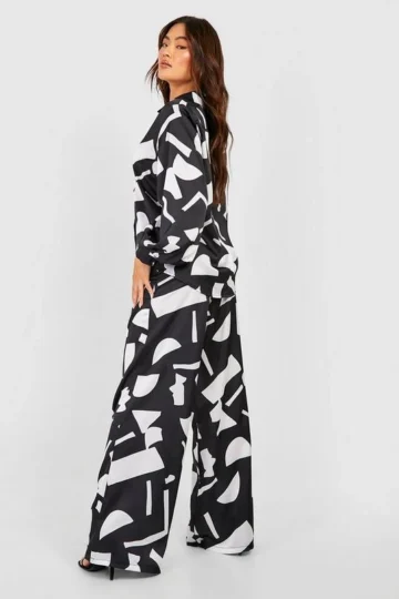 BOOHOO Abstract Print Shirt & Wide Leg Pants Set